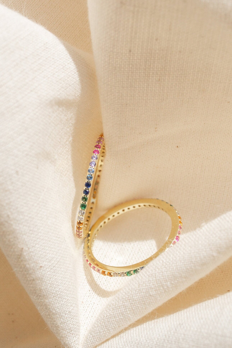 Asha Thin Gold Ring with Rainbow CZ Stones